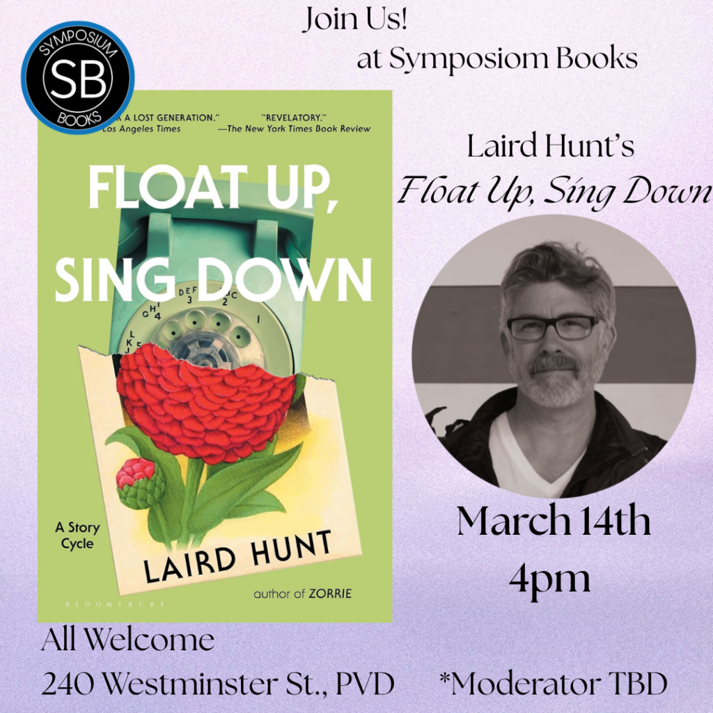 Join us on Saturday, March 14th at 4pm as we host Laird Hunt, who will be discussing his latest book, a story cycle entitled Float Up, Sing Down. Signed copies of the book will be available for purchase.