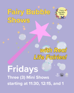 Fairy Bubble Shows 11:30am, 12:15pm, 1pm