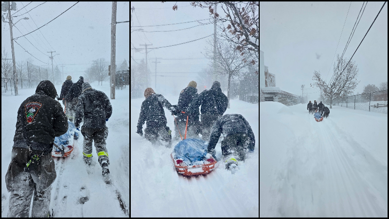 Providence firefighters trudge through snow to reach those needing help
